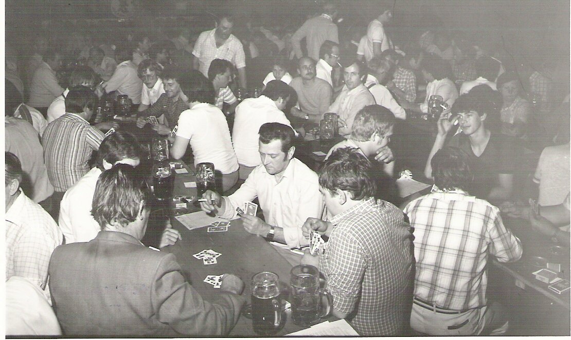 Als weiterer fester Bestandteil des Kirchweihprogramms findet ein MEGA Preisschafkopf am  Samstag den 13. August im Festzelt statt. Wir haben mal in der Chronik gestöbert und siehe da, vor 35 Jahren beim 25-jährigen Vereinsjubiläum, war das Festzelt voller Kartler. Na wer findet sich noch auf den Foto.