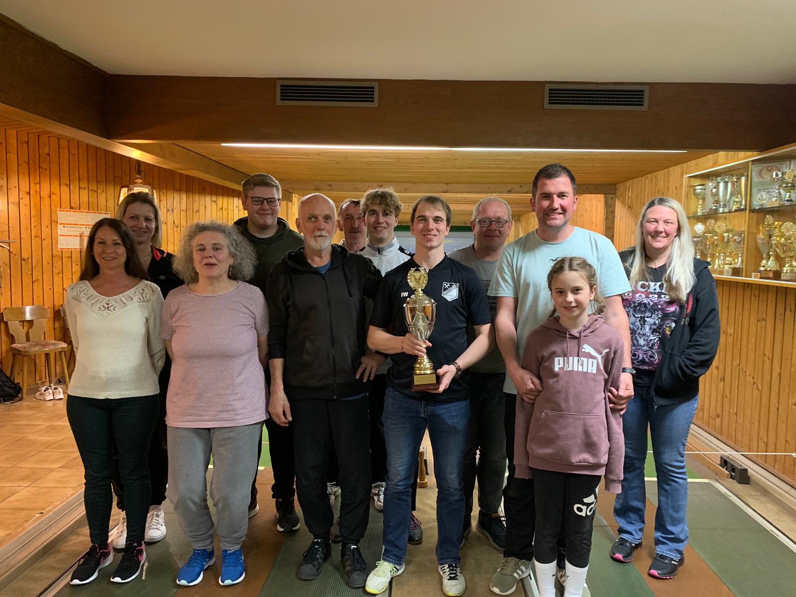 Zwölf unserer Kegler traten im internen Wettstreit um die Ehre (und um den Ring Stadtwurst) auf der Kegelbahn im Kolpinghaus an. Spaß am Kegeln stand wie immer im Vordergrund. Am Ende setzte sich Florian Wiesneth in einem dramatischen Finale gegen Daniel Haberberger als neuer Vereinsmeister durch. Nachdem beide nach ihren 40 Schub 161 Holz erzielt hatten, setzte sich Florian mit einem Holz im abschließenden Shootout (parallel fünf Schub auf die Vollen) durch. Den dritten Platz holte sich Rudi Gebhart mit 139 Holz.